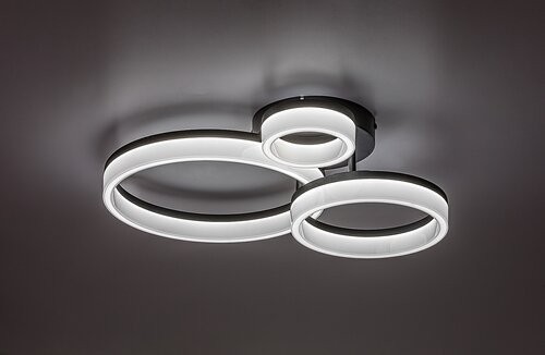 Plafoniera Rabalux Amilia este recomandată celor care apreciază atât funcționalitatea, cât și designul creativ. Această lampă LED are un stil modern, cu o combinație elegantă de culori alb și negru, o structură metalică și un abajur din plastic. Modelul spectaculos este alcătuit din trei elemente în formă de inel de dimensiuni diferite și se fixează pe tavan cu ajutorul unei baze decorative rotunde de culoare neagră. Lampa dispune de o sursă de lumină LED integrată, cu trei setări de temperatură a culorii, reglabile printr-un comutator DIP. Plafoniera are o intensitate luminoasă ridicată, făcând-o ideală pentru încăperi mai mari. Este alegerea perfectă pentru sufragerie, dining sau dormitor. Datorită tehnologiei LED integrate, acest model se remarcă printr-un consum eficient de energie și o durată lungă de viață.
