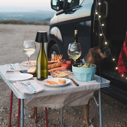 Lampa decorativă Rabalux Burdur pentru exterior este recomandată celor care doresc să adauge un element special serilor petrecute afară. Lampa de formă de sticlă de băut este realizată din plastic, cu o fixare neagră și un abajur transparent. Dispune de o sursă de iluminat LED integrată, care radiază o lumină albă caldă, transformând chiar și cea mai simplă sticlă de vin într-un element decorativ creativ. Este o alegere stilată pentru o masă în grădină sau pe terasă, unde poate fi plasată pe sticlă pentru a oferi o soluție de iluminat elegantă. Luminozitatea sa poate fi controlată folosind un comutator tactil. Lampa de design este protejată IP, astfel că este sigură pentru utilizare în exterior. Se încarcă prin cablu USB-C, dar funcționează pe o baterie care se încarcă în 4 ore și are o durată de funcționare similară cu o singură încărcare. Tehnologia LED asigură o funcționare eficientă din punct de vedere energetic și o durată lungă de viață a lămpii.